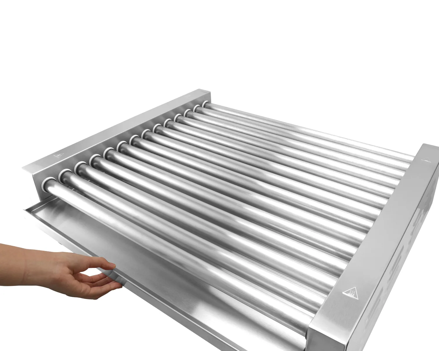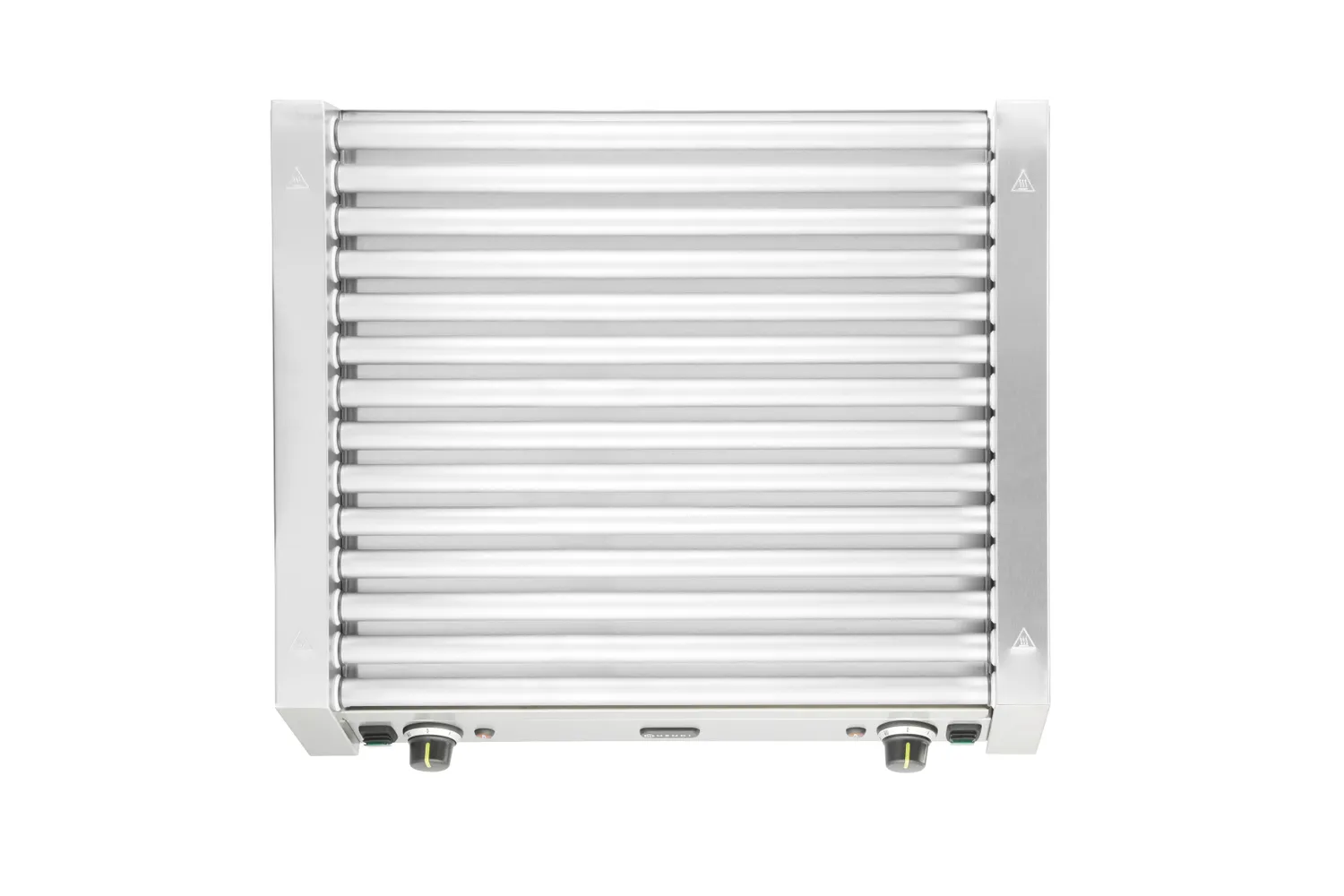 Leidžia sutaupyti iki 20% suvartotos energijos. Sumažina dešrelių kepimo laiką iki 15%, šilumos koncentracijos po apsauginiu stiklu dėka. Trys 4 mm storio stiklo elementai. Nerūdijančio plieno konstrukcija sujungia apsauginio stiklo elementus. Keturi karščiui atsparūs plastikiniai elementai apsauginiam stiklui pritvirtinti prie grilio. Dėmesio! Tinka tik naujo tipo ritininiams dešrelių griliams su angomis rėme fiksatoriams uždėti.